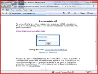 - When you apply for jobs with the City of Miami, you will use the same Username and Password you created with
