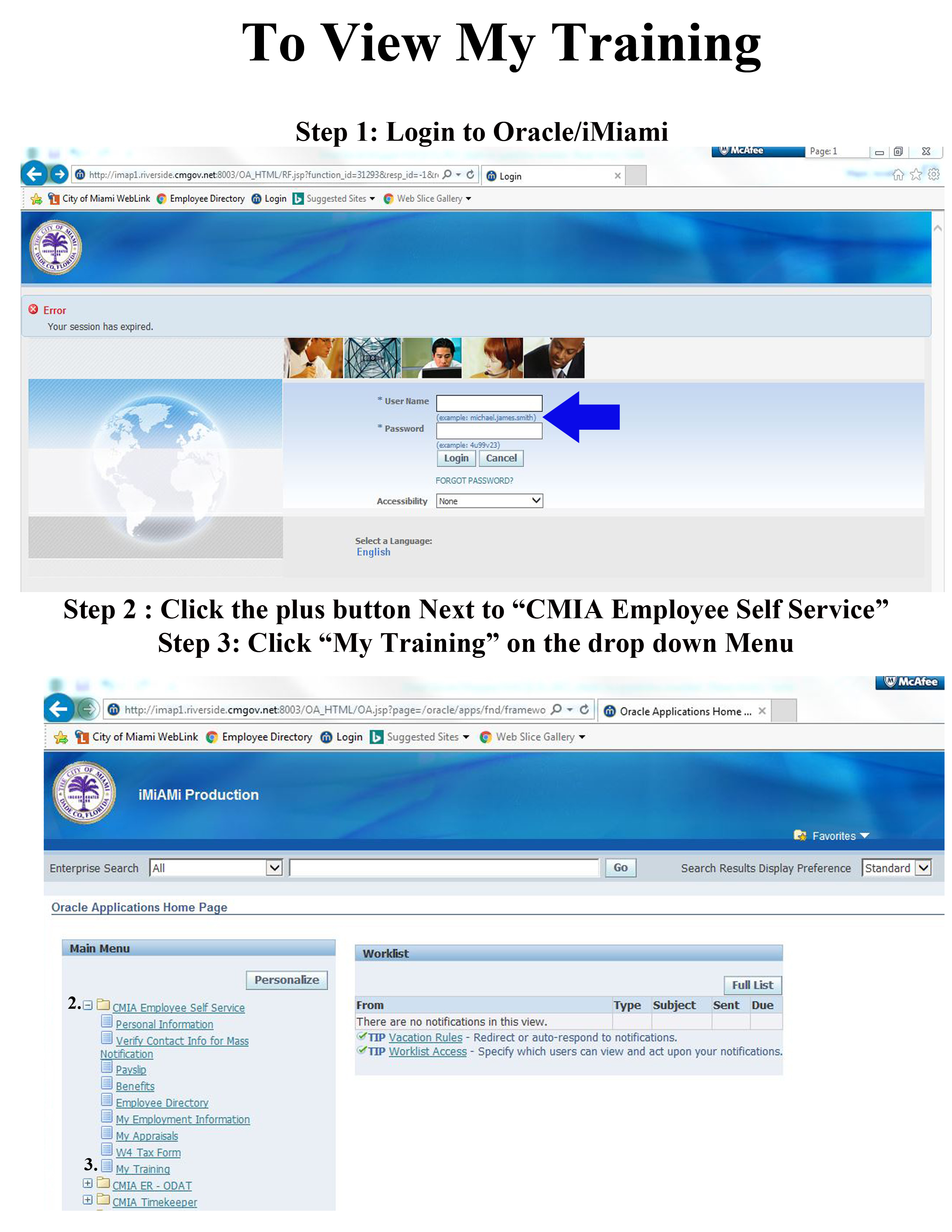 Employees can view their training transcript via the My Training function in the Oracle Self-Service module. Employees can access their training transcript by clicking on the button below and following the directions provided.
