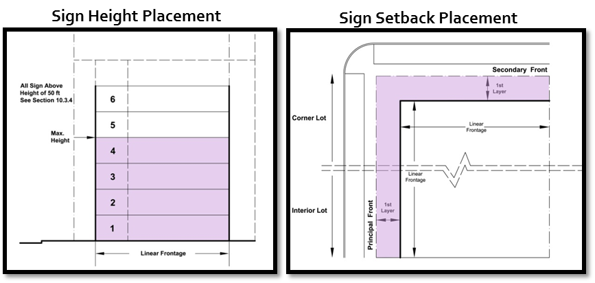 - All monument signs shall be placed along the principal frontage within the base building line of the establishment.