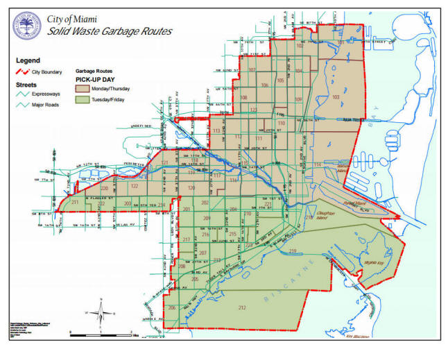 - North of Flagler Street and East of N.W. 57th Avenue: Your garbage collection days are Monday and Thursday